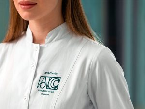 O contraste entre o verde escuro e o verde médio garante versatilidade: a marca funciona em fundo claro, fundo escuro, bordado em jaleco, aplicação digital e impressa.