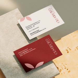 A Experiência do Cliente O branding de varejo ganha vida no momento em que a cliente deixa a loja. Por isso, o projeto não se limitou ao logotipo. Desenvolvemos o novo cartão de visitas e, principalmente, a sacola — que atua como um outdoor móvel de sofisticação. Cada ponto de contato foi pensado para reforçar a percepção de valor e o cuidado da marca com os detalhes.